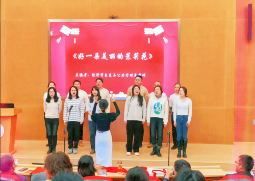 联欢会现场节目形式多样、内容丰富、精彩纷呈,或欢快、或温馨、或活泼,展现了学院教职工多才多艺的一面,以及对教育事业的热爱和新年的美好祝福。由经济贸易系与公共管理系联合带来的合唱《好一朵美丽的茉莉花》拉开了本次迎新春联欢会的序章;工商管理学系老师们的歌舞表演《这世界那么多人》旋律优美、舞姿动人,在寒冷的冬季传达出无限的温暖与感动;药事管理系张乐乐老师带来的歌曲《贝加尔湖畔》柔情似水、温暖美好,让现场观众沉醉其中;院办与实验中心老师带来的朗诵《我爱上班》,用幽默诙谐的语言和活泼率真的表演,展现了对工作的无比热爱和对未来的热切向往;学工团队带来的舞蹈串烧《E人总动员》,用动感的旋律、活泼的舞姿、近距离的互动,为活动现场带来无尽的欢乐与美好的祝福。学院领导班子成员带来的演唱《我和我的祖国》满怀对祖国的热爱与祝福,凝聚力量、振奋人心,为本次联欢会注入了满满的活力。活动最后,为表彰典型,鼓励先进,学院颁发2023年度304永利教职工荣誉奖项,以此为契机鼓舞全体教职工在新的一年再接再厉,勇往直前,齐心协力共同推动学院发展再上新台阶。