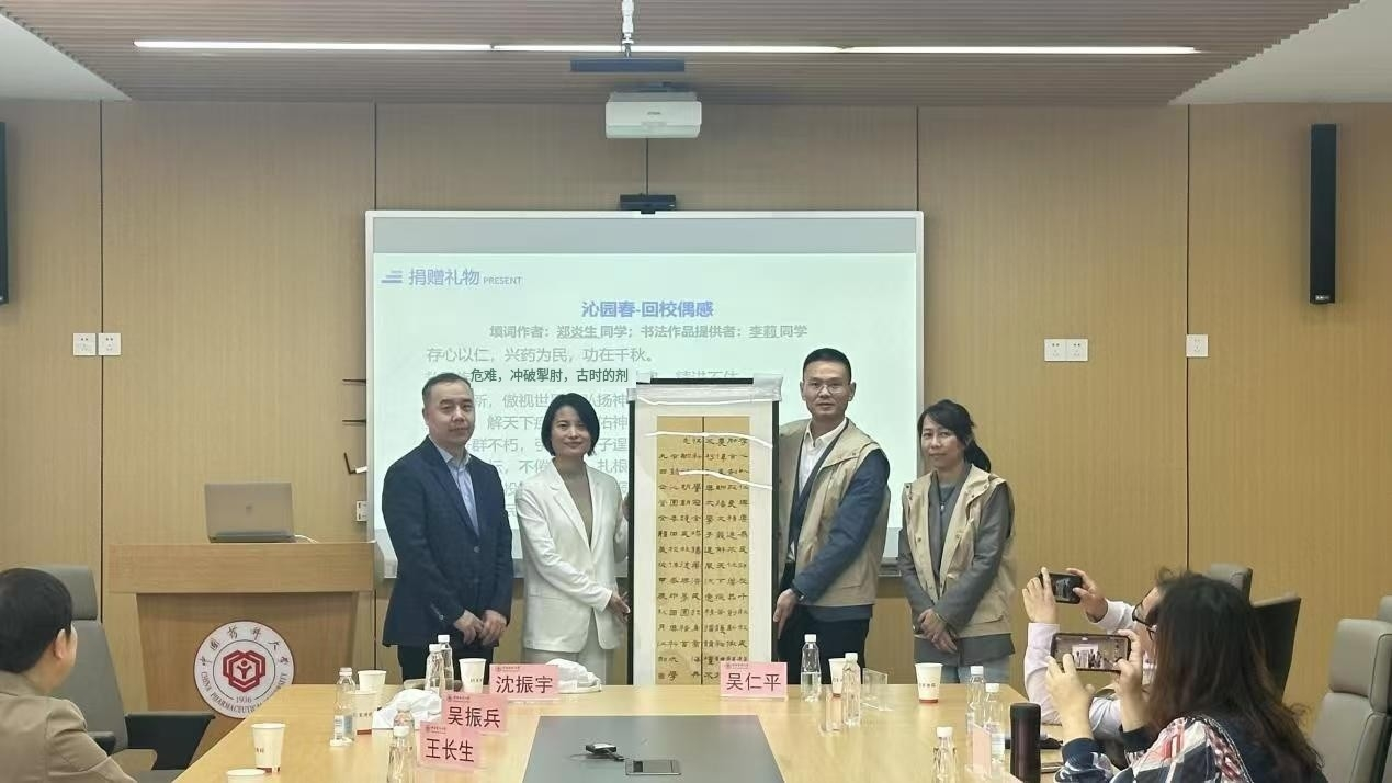 接下来,1994级医药企业管理专业的员工代表向304永利捐赠了诗词书法作品,表达了全体员工对母校和304永利深深的敬意和衷心的祝福。员工们表示将继续践行“精业济群”的校训精神,为医药事业、为社会发展增光添彩。