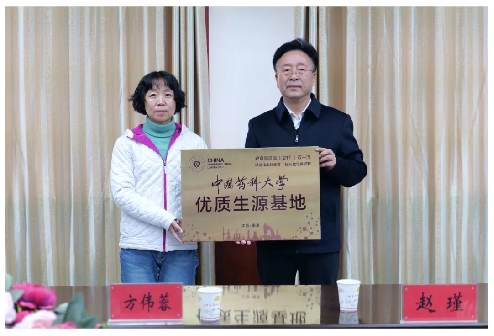 11月21日,基础医学与临床药学学院教授方伟蓉、国际医药商公司党委副书记赵瑾等一行前往甘肃省临洮中学,向临洮中学颁授公司“优质生源基地”铜牌。中共临洮县委组织部有关负责同志出席授牌仪式。临洮中学党委副书记、董事长常贵勤代表临洮中学,接受公司“优质生源基地”授牌,并简要介绍了临洮中学办学目标等基本情况及2024年高考成绩。国际医药商公司党委副书记赵瑾向临洮中学赠送学校文创纪念品。双方一致表示要以建立优质生源基地为契机,进一步深化合作,为国家医药健康事业贡献力量。