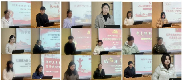 会上,学院1个博士生党支部、11个硕士生党支部、6个本科生党支部、5个教工党支部按照抽签顺序依次述职,对照支部建设“七个有力”,各支部分别围绕2024年工作成绩和亮点、2024年党费使用情况、2025年支部工作计划、最佳党日活动4个方面进行汇报。学院组织员聚焦专职组织员本职岗位职责,突出工作重点,汇报了履职情况、工作业绩、存在问题及后续工作打算等内容。各支部书记、组织员查问题、晒成绩、谈思路,接受现场评议