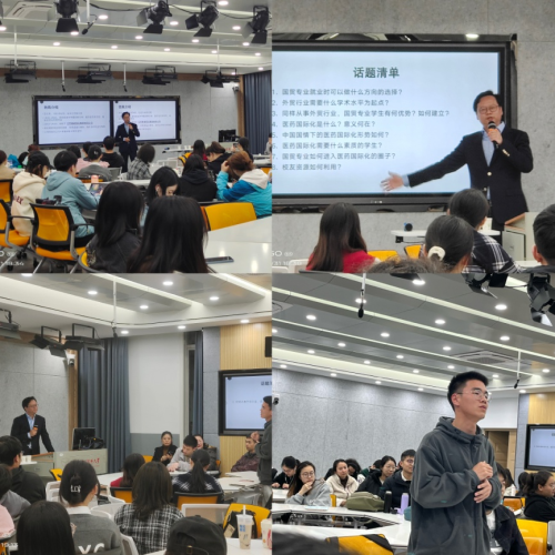 王铃木员工以其在江苏豪森药业二十余年的从业经历为出发点对国际经济与贸易专业的就业方向、从事医药国际化业务需要具备的基本素质、目前中国医药国际化形势、如何进入医药国际化的圈子以及如何进行职业规划等话题进行了生动精彩的讲解,内容丰富详实。同时,王铃木员工就同学们所提出的有关就业地区选择、职业发展、工作内容、就业升学选择以及如何培养相关专业技能等问题进行了耐心细致的解答,并且结合自身从业经验给予了就业指导和建议,现场互动气氛热烈。最后胡霞副教授鼓励国际经济与贸易专业学子勇敢自信地面对将来的职业生涯,积极做好知识和能力储备。